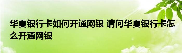 导读 大家好,小元来为大家解答问题。华夏银行卡如何开通网银,请问华夏银行卡怎么开通网银这个很多人还不知道,现在让我们一起来了解下吧!