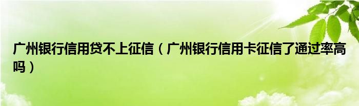 导读 大家好,小元来为大家解答问题。广州银行信用贷不上征信,广州银行信用卡征信了通过率高吗这个很多人还不知道,现在让我们一起来了解下吧!