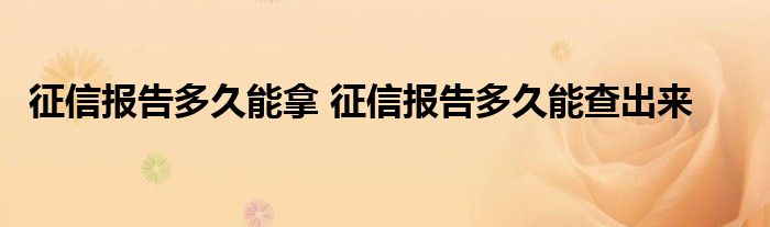 导读 大家好,小元来为大家解答问题。征信报告多久能拿,征信报告多久能查出来,这个很多人还不知道,现在让我们一起来了解下吧!