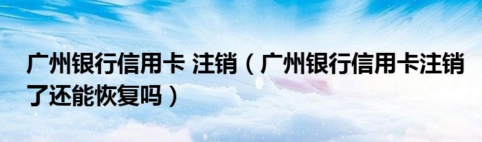 导读 大家好,小元来为大家解答问题。广州银行信用卡 注销,广州银行信用卡注销了还能恢复吗这个很多人还不知道,现在让我们一起来了解下吧!广