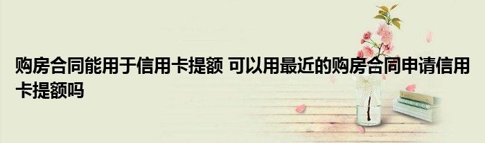 导读 大家好,小元来为大家解答问题。购房合同能用于信用卡提额,可以用最近的购房合同申请信用卡提额吗这个很多人还不知道,现在让我们一起来了