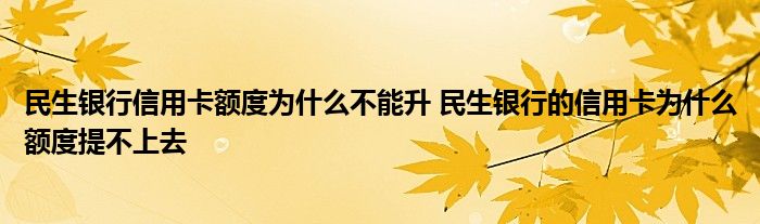 导读 大家好,小元来为大家解答问题。民生银行信用卡额度为什么不能升,民生银行的信用卡为什么额度提不上去这个很多人还不知道,现在让我们一起