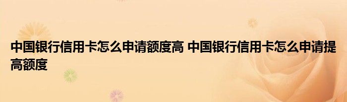 导读 大家好,小元来为大家解答问题。中国银行信用卡怎么申请额度高,中国银行信用卡怎么申请提高额度这个很多人还不知道,现在让我们一起来了解