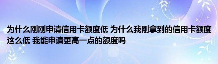导读 大家好,小元来为大家解答问题。为什么刚刚申请信用卡额度低,为什么我刚拿到的信用卡额度这么低,我能申请更高一点的额度吗这个很多人还不