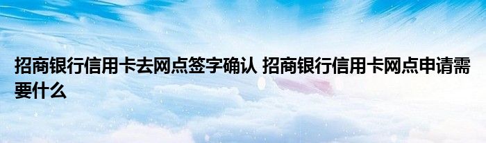 导读 大家好,小元来为大家解答问题。招商银行信用卡去网点签字确认,招商银行信用卡网点申请需要什么这个很多人还不知道,现在让我们一起来了解