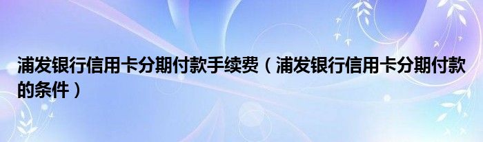 导读 大家好,小元来为大家解答问题。浦发银行信用卡分期付款手续费,浦发银行信用卡分期付款的条件这个很多人还不知道,现在让我们一起来了解下