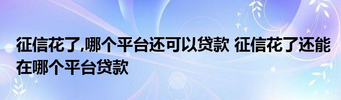 导读 大家好,小元来为大家解答问题。征信花了,哪个平台还可以贷款,征信花了还能在哪个平台贷款这个很多人还不知道,现在让我们一起来了解下吧!