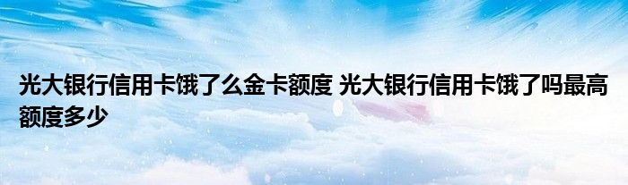 导读 大家好,小元来为大家解答问题。光大银行信用卡饿了么金卡额度,光大银行信用卡饿了吗最高额度多少这个很多人还不知道,现在让我们一起来了