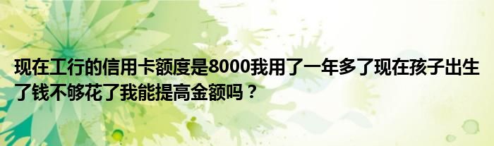 导读 大家好,小元来为大家解答问题。现在工行的信用卡额度是8000我用了一年多了现在孩子出生了钱不够花了我能提高金额吗?这个很多人还不知道,
