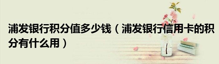 导读 大家好,小元来为大家解答问题。浦发银行积分值多少钱,浦发银行信用卡的积分有什么用这个很多人还不知道,现在让我们一起来了解下吧!首先