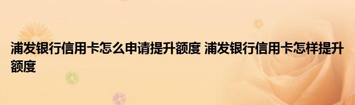 导读 大家好,小元来为大家解答问题。浦发银行信用卡怎么申请提升额度,浦发银行信用卡怎样提升额度这个很多人还不知道,现在让我们一起来了解下