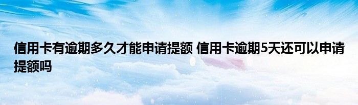 导读 大家好,小元来为大家解答问题。信用卡有逾期多久才能申请提额,信用卡逾期5天还可以申请提额吗这个很多人还不知道,现在让我们一起来了解下