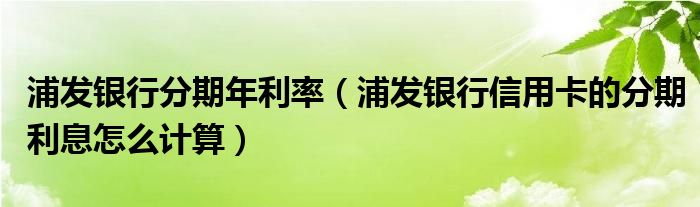 大家好,小元来为大家解答问题。浦发银行分期年利率,浦发银行信用卡的分期利息怎么计算这个很多人还不知道,现在让我们一起来了解下吧!