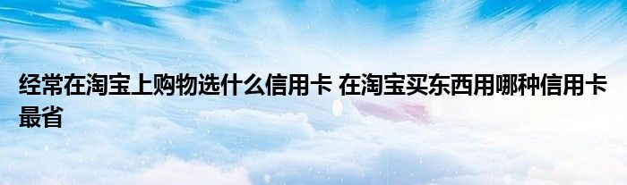 导读 大家好,小元来为大家解答问题。经常在淘宝上购物选什么信用卡,在淘宝买东西用哪种信用卡最省这个很多人还不知道,现在让我们一起来了解下