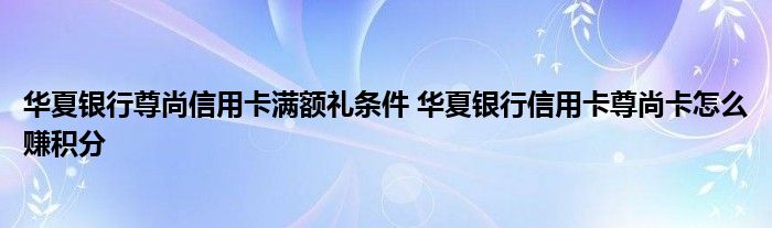 导读 大家好,小元来为大家解答问题。华夏银行尊尚信用卡满额礼条件,华夏银行信用卡尊尚卡怎么赚积分这个很多人还不知道,现在让我们一起来了解
