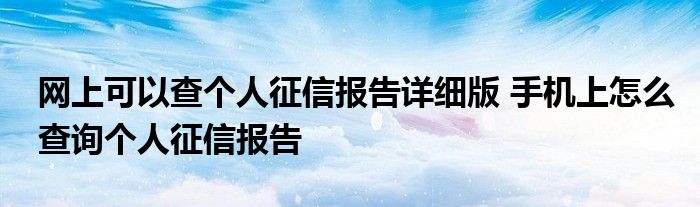 导读 大家好,小元来为大家解答问题。网上可以查个人征信报告详细版,手机上怎么查询个人征信报告这个很多人还不知道,现在让我们一起来了解下吧