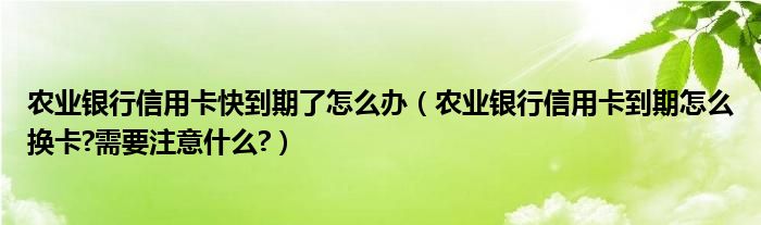 导读 大家好,小元来为大家解答问题。农业银行信用卡快到期了怎么办,农业银行信用卡到期怎么换卡?需要注意什么?这个很多人还不知道,现在让我们