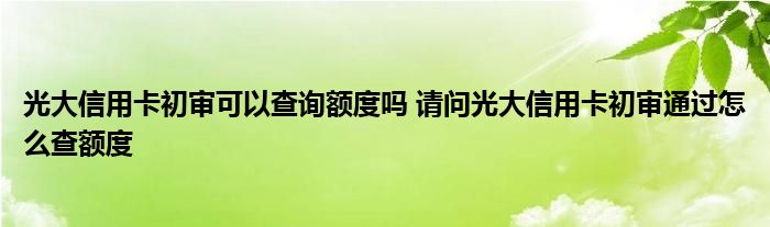导读 大家好,小元来为大家解答问题。光大信用卡初审可以查询额度吗,请问光大信用卡初审通过怎么查额度这个很多人还不知道,现在让我们一起来了