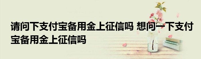 导读 大家好,小元来为大家解答问题。请问下支付宝备用金上征信吗,想问一下支付宝备用金上征信吗这个很多人还不知道,现在让我们一起来了解下吧