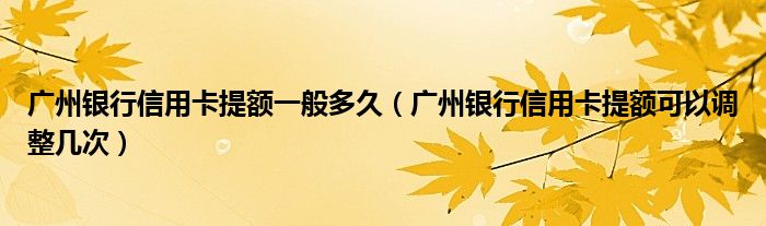 导读 大家好,小元来为大家解答问题。广州银行信用卡提额一般多久,广州银行信用卡提额可以调整几次这个很多人还不知道,现在让我们一起来了解下
