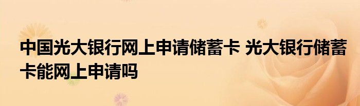 导读 大家好,小元来为大家解答问题。中国光大银行网上申请储蓄卡,光大银行储蓄卡能网上申请吗这个很多人还不知道,现在让我们一起来了解下吧!
