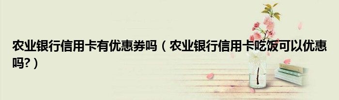导读 大家好,小元来为大家解答问题。农业银行信用卡有优惠券吗,农业银行信用卡吃饭可以优惠吗?这个很多人还不知道,现在让我们一起来了解下吧!