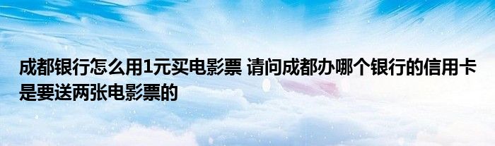 大家好,小元来为大家解答问题。成都银行怎么用1元买电影票,请问成都办哪个银行的信用卡是要送两张电影票的这个很多人还不知道,现在让我们一起来了解下吧!