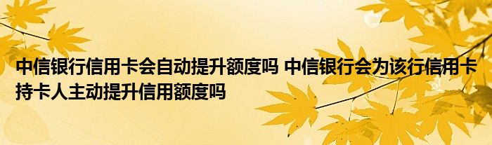 导读 大家好,小元来为大家解答问题。中信银行信用卡会自动提升额度吗,中信银行会为该行信用卡持卡人主动提升信用额度吗这个很多人还不知道,现