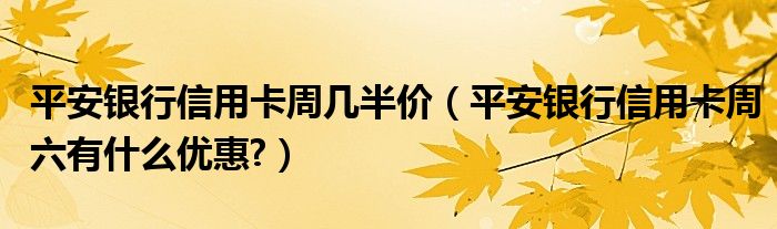 大家好,小元来为大家解答问题。平安银行信用卡周几半价,平安银行信用卡周六有什么优惠?这个很多人还不知道,现在让我们一起来了解下吧!