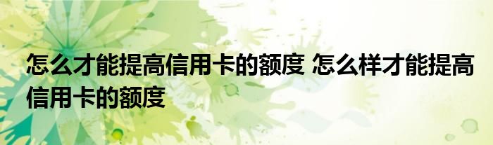 导读 大家好,小元来为大家解答问题。怎么才能提高信用卡的额度,怎么样才能提高信用卡的额度这个很多人还不知道,现在让我们一起来了解下吧!