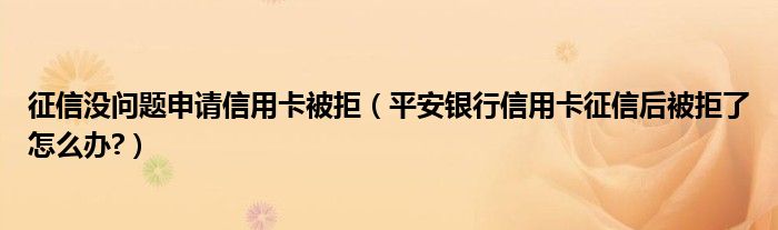导读 大家好,小元来为大家解答问题。征信没问题申请信用卡被拒,平安银行信用卡征信后被拒了怎么办?这个很多人还不知道,现在让我们一起来了解下