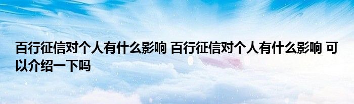 导读 大家好,小元来为大家解答问题。百行征信对个人有什么影响,百行征信对个人有什么影响,可以介绍一下吗这个很多人还不知道,现在让我们一起