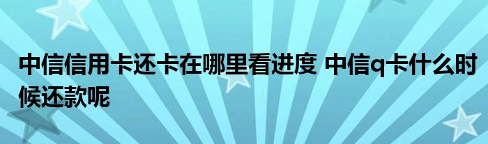 导读 大家好,小元来为大家解答问题。中信信用卡还卡在哪里看进度,中信q卡什么时候还款呢这个很多人还不知道,现在让我们一起来了解下吧!