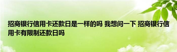 导读 大家好,小元来为大家解答问题。招商银行信用卡还款日是一样的吗,我想问一下,招商银行信用卡有限制还款日吗这个很多人还不知道,现在让我