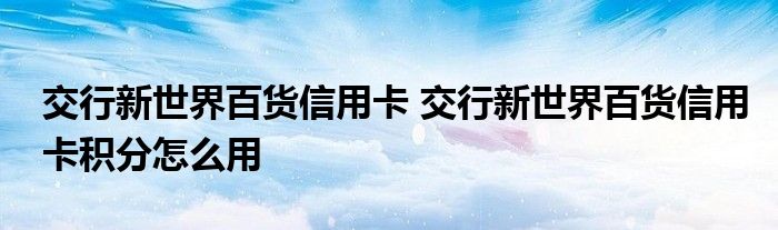 导读 大家好,小元来为大家解答问题。交行新世界百货信用卡,交行新世界百货信用卡积分怎么用这个很多人还不知道,现在让我们一起来了解下吧!