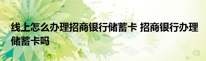 导读 大家好,小元来为大家解答问题。线上怎么办理招商银行储蓄卡,招商银行办理储蓄卡吗这个很多人还不知道,现在让我们一起来了解下吧!