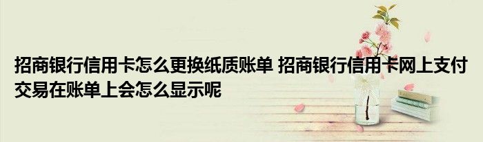导读 大家好,小元来为大家解答问题。招商银行信用卡怎么更换纸质账单,招商银行信用卡网上支付交易在账单上会怎么显示呢这个很多人还不知道,现