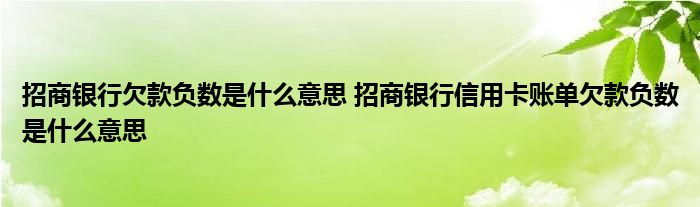 导读 大家好,小元来为大家解答问题。招商银行欠款负数是什么意思,招商银行信用卡账单欠款负数是什么意思这个很多人还不知道,现在让我们一起来