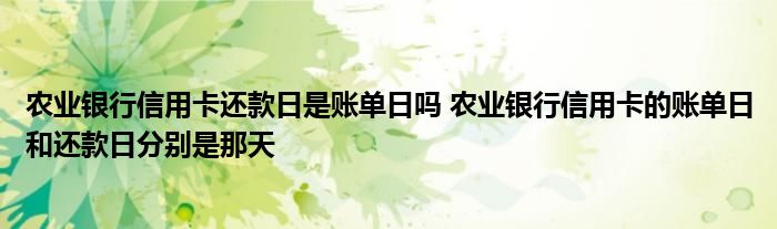 导读 大家好,小元来为大家解答问题。农业银行信用卡还款日是账单日吗,农业银行信用卡的账单日和还款日分别是那天这个很多人还不知道,现在让我