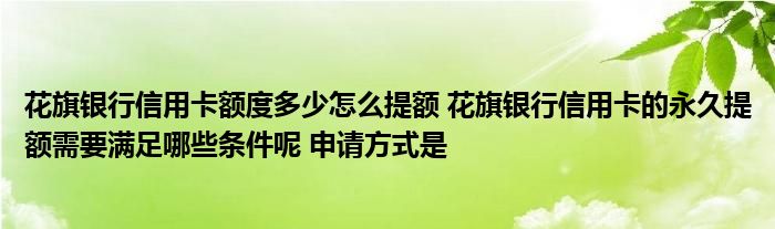 导读 大家好,小元来为大家解答问题。花旗银行信用卡额度多少怎么提额,花旗银行信用卡的永久提额需要满足哪些条件呢,申请方式是这个很多人还不