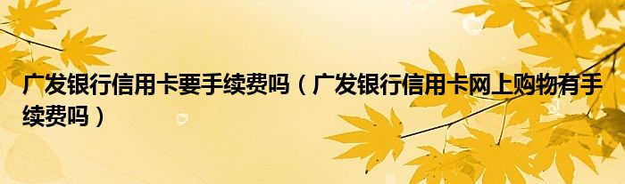 导读 大家好,小元来为大家解答问题。广发银行信用卡要手续费吗,广发银行信用卡网上购物有手续费吗这个很多人还不知道,现在让我们一起来了解下