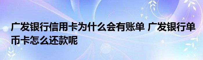 导读 大家好,小元来为大家解答问题。广发银行信用卡为什么会有账单,广发银行单币卡怎么还款呢这个很多人还不知道,现在让我们一起来了解下吧!