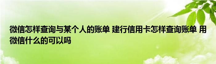 导读 大家好,小元来为大家解答问题。微信怎样查询与某个人的账单,建行信用卡怎样查询账单,用微信什么的可以吗这个很多人还不知道,现在让我们