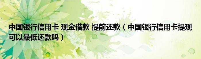大家好,小元来为大家解答问题。中国银行信用卡 现金借款 提前还款,中国银行信用卡提现可以最低还款吗这个很多人还不知道,现在让我们一起来了解下吧!
