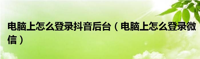 大家好,精选小综来为大家解答以上的问题。电脑上怎么登录抖音后台,电脑上怎么登录微信很多人还不知道,现在让我们一起来看看吧!