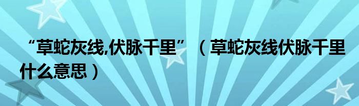 导读 大家好,精选小综来为大家解答以上的问题。“草蛇灰线,伏脉千里”,草蛇灰线伏脉千里什么意思很多人还不知道,现在让我们一起来看看吧!草