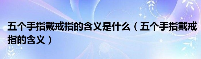 导读 大家好,精选小综来为大家解答以上的问题。五个手指戴戒指的含义是什么,五个手指戴戒指的含义很多人还不知道,现在让我们一起来看看吧!其