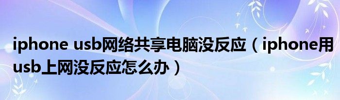 导读 大家好,精选小综来为大家解答以上的问题。iphone usb网络共享电脑没反应,iphone用usb上网没反应怎么办很多人还不知道,现在让我们一起来