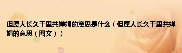 导读 大家好,精选小综来为大家解答以上的问题。但愿人长久千里共婵娟的意思是什么,但愿人长久千里共婵娟的意思,图文很多人还不知道,现在让我