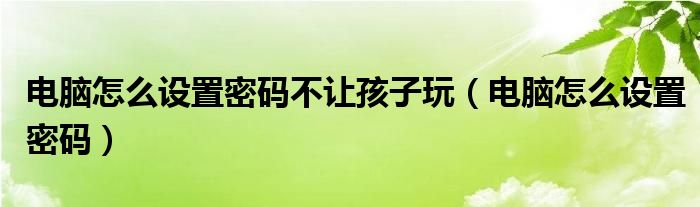 导读 大家好,精选小综来为大家解答以上的问题。电脑怎么设置密码不让孩子玩,电脑怎么设置密码很多人还不知道,现在让我们一起来看看吧!如果不